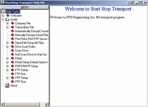 The “Help” menu explains in detail each field in Start Stop Transport. If the user has access to the World Wide Web, the help has hyperlinks to a web site that explains computer terminologies.